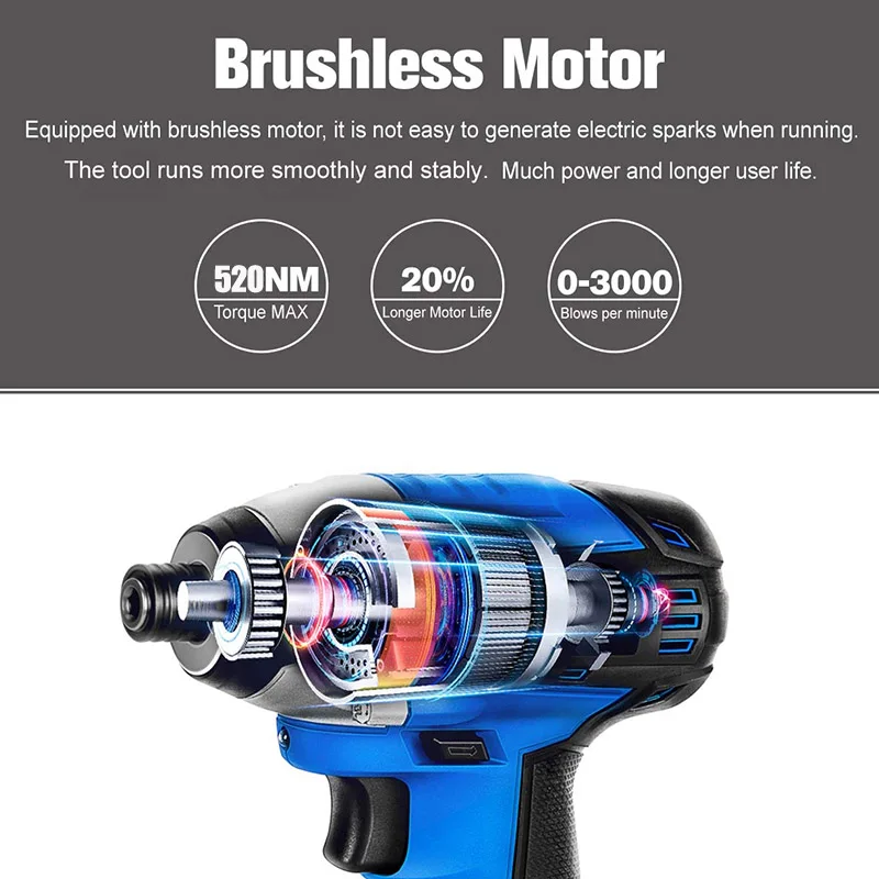 Doersupp 630N.m 500W Cordless Brushless Impact Wrench Cordless Electric Impact Wrench Drill Screwdriver with 16800mAh Battery