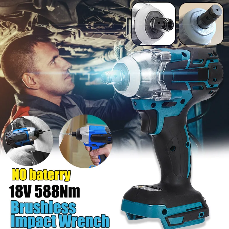 18V 588Nm Electric Brushless Impact Wrench Rechargeable 1/2 Socket Wrench Power Tool Cordless Without Battery Accessories