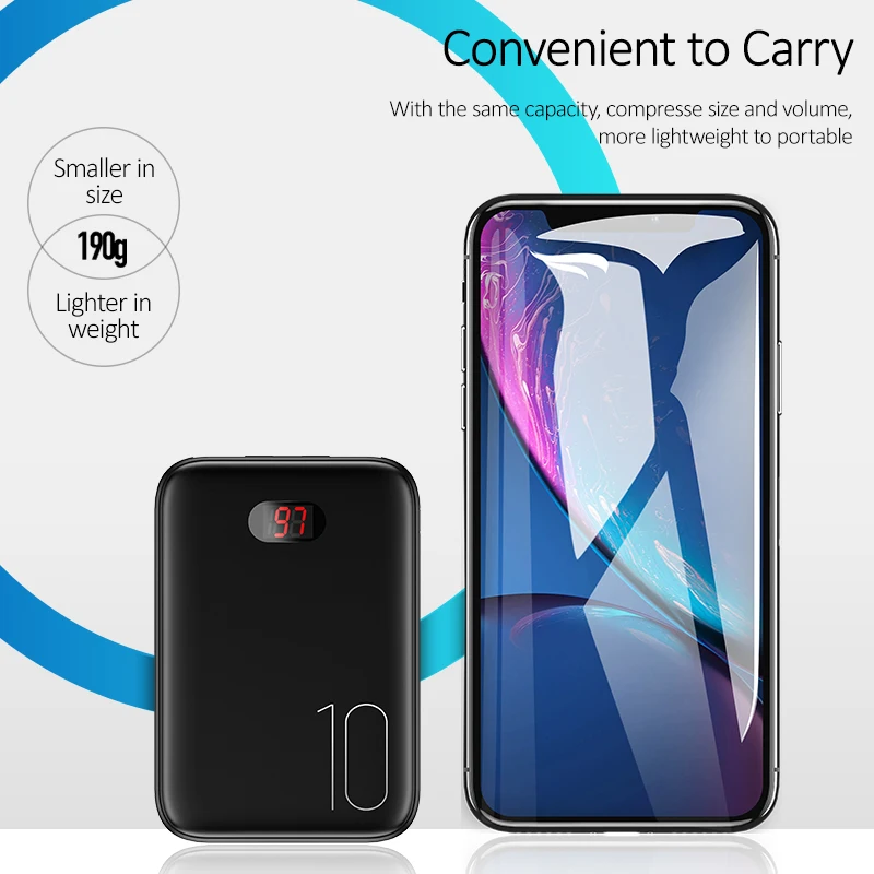 10000mAh Power Bank for iPhone Samsung, USAMS External Battery Poverbank LED display Power banks fast charging mini pover bank