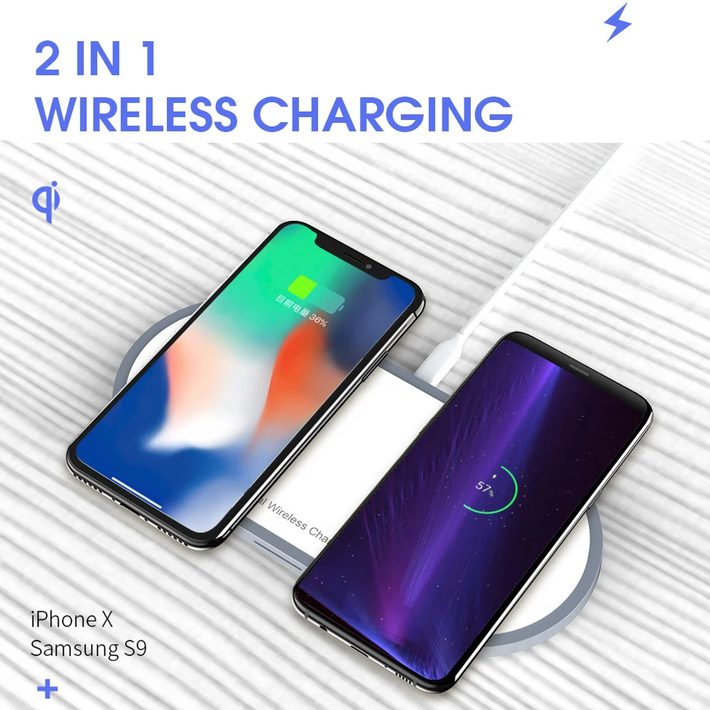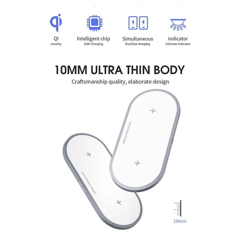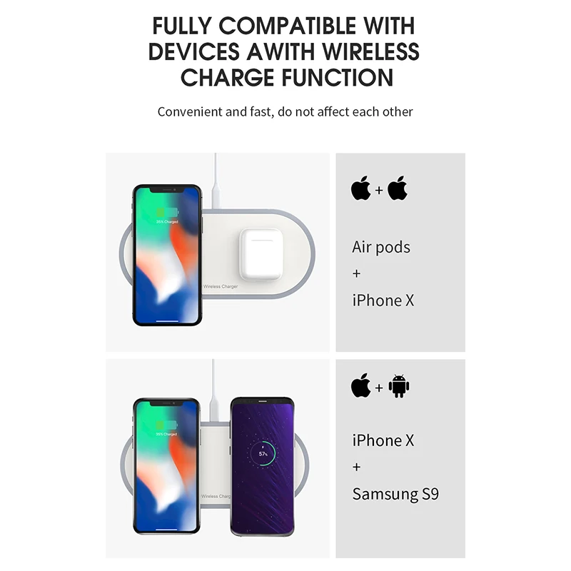 Hot Sale Ocube Dual 2 IN 1 Qi Wireless Charger for Iphone 8 X Xs Max Xr For Airpods 10w Fast Charge For Sams