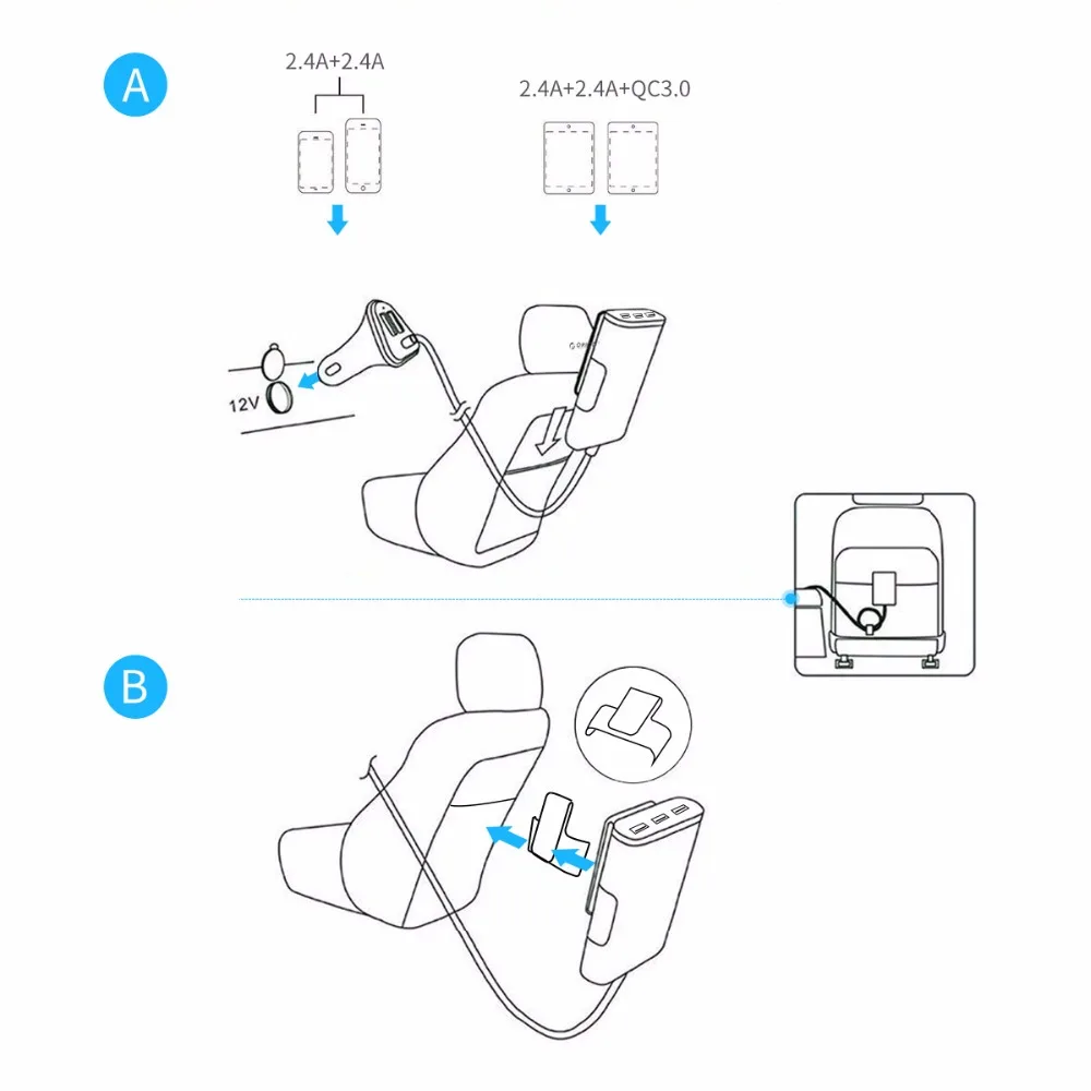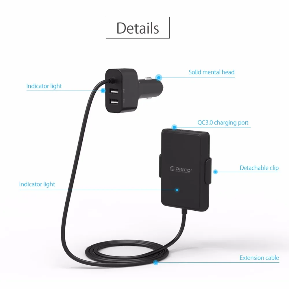 ORICO 5 Port QC3.0 USB Car Charger Universal USB Charger Adapter 52W For MPV Car Mobile Phones Tablet PC 12V-24V