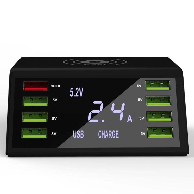 Hot Sale STOD Qi Wireless USB Charger 60W LED Display Quick Charge 3.0 Fast Charging Station For iPhone X Sa