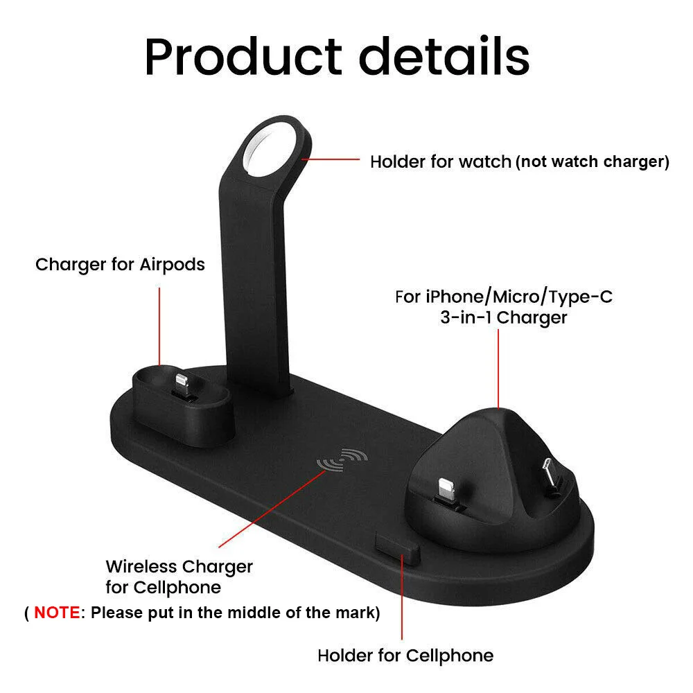 Hot Sale 4in1 Wireless Charger for iPhone X Xs Max XR 8 QI Fast Charging Dock Station For Airpod Android Sma