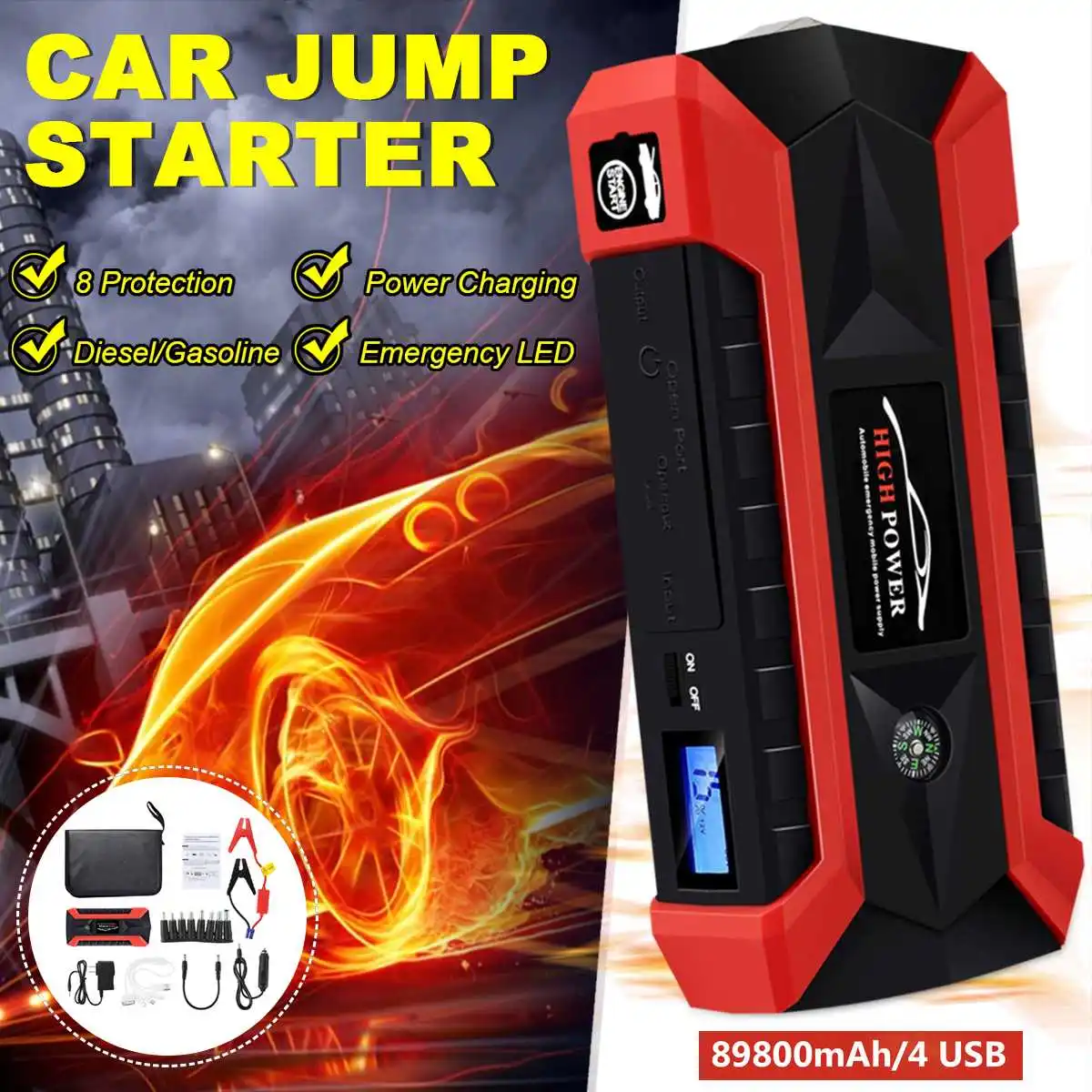 Best Product 89800mAh 12V Car Jump Starter 4USB Multifunction Emergency Charger Battery Power Bank Booster Start