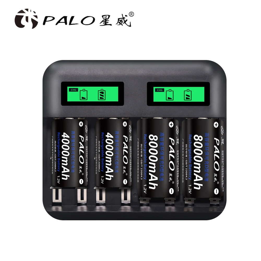 Best Seller PALO 8 Slots smart LCD Display AA Battery Charger for AA AAA SC C D size battery 1.2V Ni-MH Ni-CD r