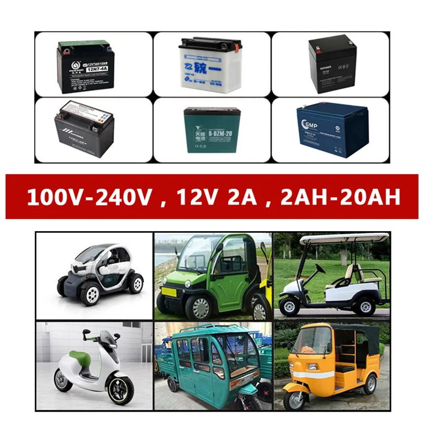 12V 2A Smart Car Motorcycle Battery Charger Full Automatic LCD Display 12 V Volt Moto Auto Lead Acid AGM GEL Intelligent 220V EU