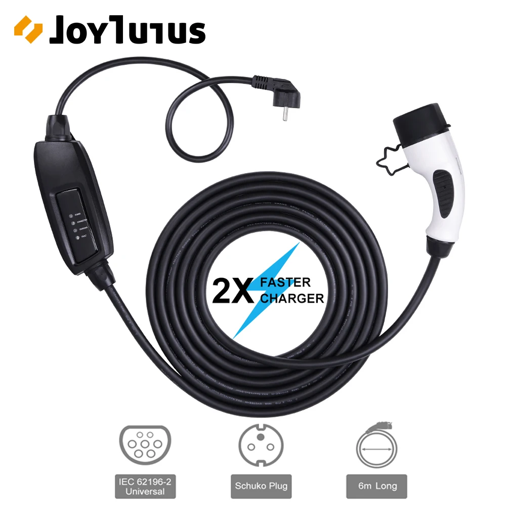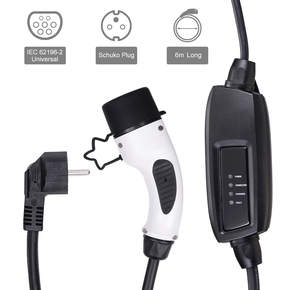 J1772 EVSE 6m Cable Input EV Plug Level 2 Charger 16A Type 1 Schuko for Electric Car Charging