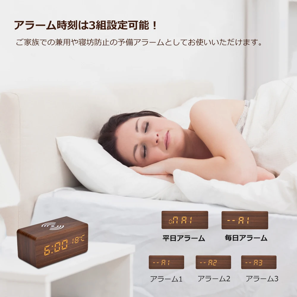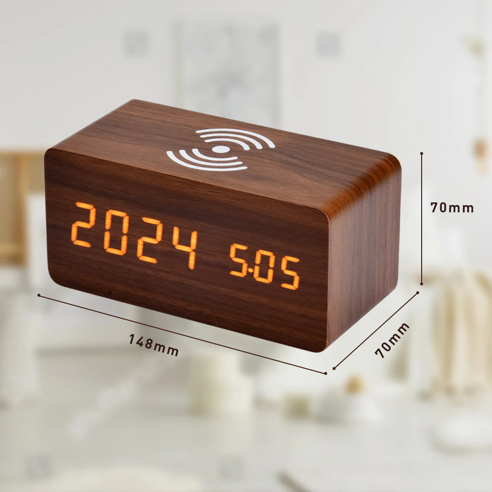 Big Promo Desktop Digital Clock Led Alarm Clock with Phone Wireless Charger Sound Control Wooden Led Clock wi
